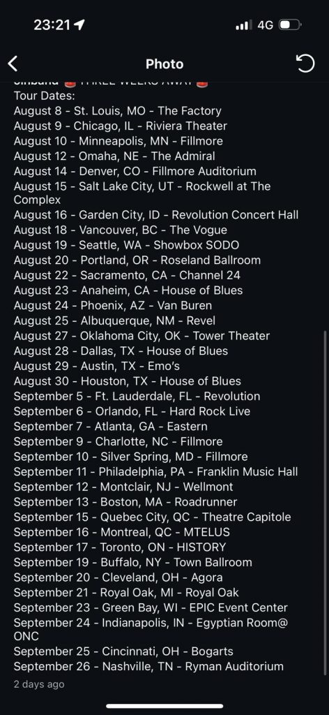 And backline tech Robbie? He of the illustrated skin? I was telling you that he has been non stop touring in the U.S.A throught the whole year. And his latest jaunt there began on August 8th with a Nashville based band you’ve probably never heard of called Our Last Night who, would you believe, are on their last tour. Very appropriate to their name, although if they are anything like The Searchers there will probably be another last tour, followed by yet another last tour plus ,,,,,,,,,,and so it goes on. Anyway, I`ll include their schedule in this newsletter to show you the insane schedule that young Rob is working on right through till the end of September.