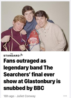 Another possibility is that maybe the powers that be at Glasto, having suffered an avalache of moans with regard to the ‘longest running name in U.K pop history’ not being filmed on their final show, could invite us back in 2027 (there is no Glasto next year, the fields which need to recover are being left fallow) and maybe on a stage where cameras are not banned.