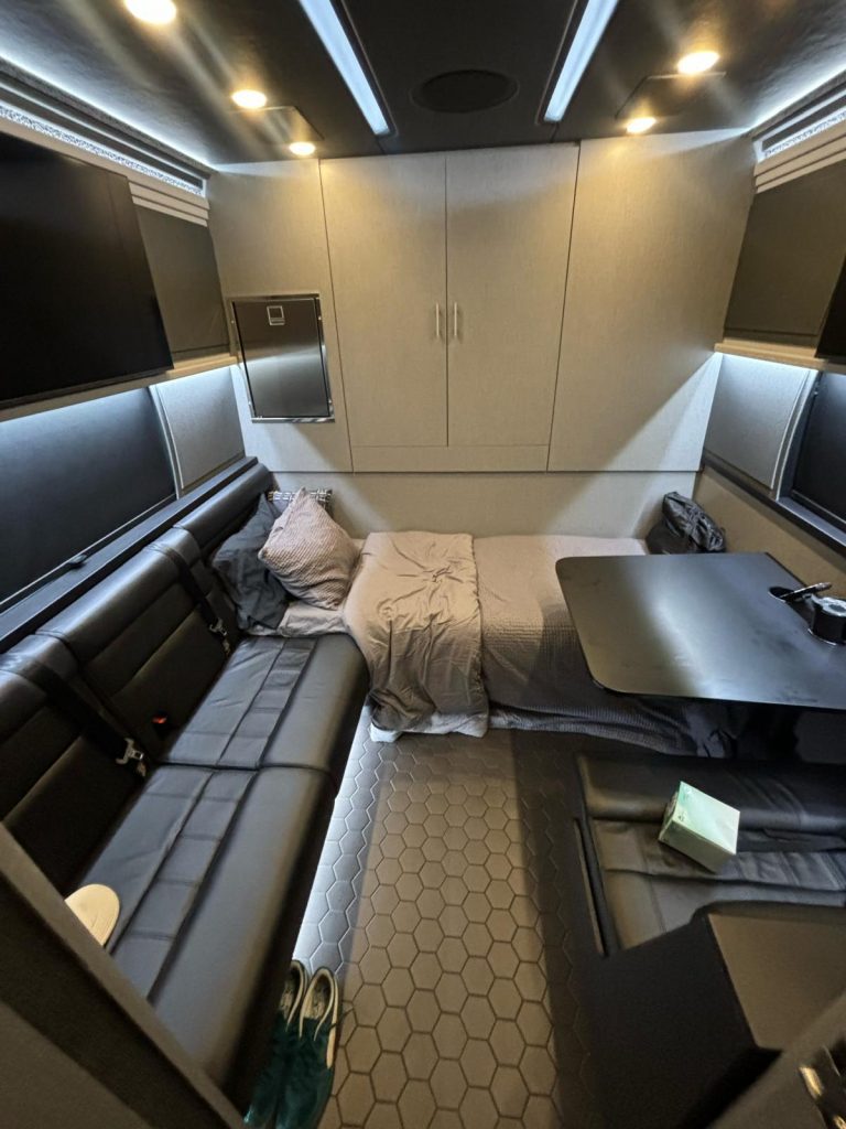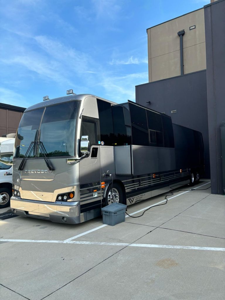 He sent me some pictures of the tour bus (I’ll put a pic in with this letter) and stuff. Amazing. It certainly is different to our trusty old Ford Transits. This is a differet ball game altogether. But I bet he’s having the time of his life and he deserves it.